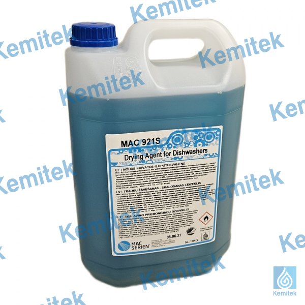 MAC 921S is a drying agent which is suitable for all types professional dishwashers. Prevents water stains and favors drying. Reduces water surface tension and foaming during the washing process. Suitable for all water types. Does not damage dishes nor dishwashers. Prevents limestone.