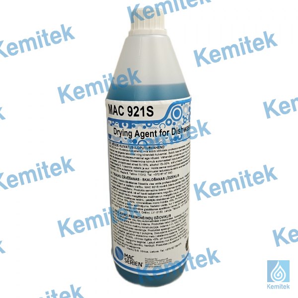 MAC 921S ir koncentrēts līdzeklis trauku skalošanai profesionālajās trauku mazgājamās mašīnās. MAC 921S novērš ūdens atstāto traipu veidošanos uz traukiem un veicina to ātrāku nožūšanu. Produkts samazina ūdens virsmas spriegumu un mazina putu veidošanos mazgāšanas procesā, kā arī nebojā trauku mazgāšanas mašīnas un mazgāto trauku veidojošos materiālus un kavē kaļķakmens nogulšņu attīstību trauku mazgāšanas mašīnās. Produktu var pielietot ūdenī ar dažādu cietību.