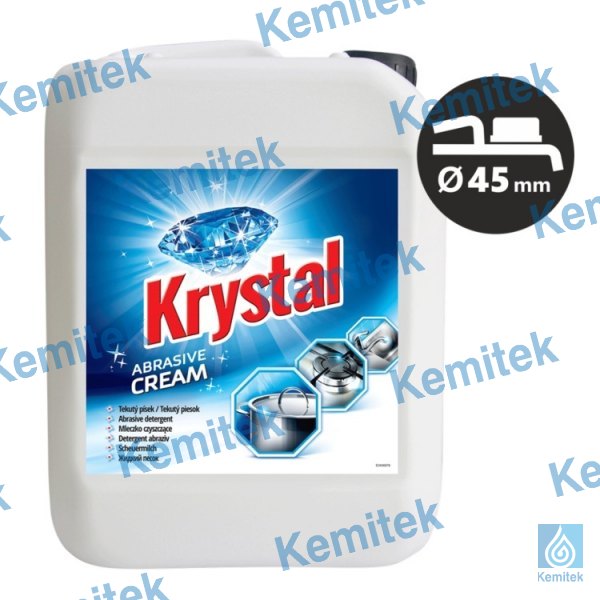 KRYSTAL abrazīvs krēmveida tīrīšanas līdzeklis, 500ml / 600g pudelē. Produktam piemīt īpašas tīrīšanas īpašības, kuras nodrošina pat ļoti netīru trauku attīrīšanu, labi atmazgā darba virsmas, virsmas virtuvē un citas mājsaimniecības zonas, tai skaitā plitis. Produkts satur abrazīvu piedevu, kas nodrošina labu mazgāšanas efektu.