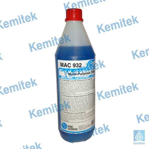 MAC 932 ir viegli sārmains, līdzeklis plastmasas virsmu, dažādu grīdas segumu (linoleja, akmens, flīzētu un krāsotu grīdu), krāsotu virsmu, flīzētu virsmu, WC podu, izlietņu un visu citu ūdens izturīgu virsmu (izņemot stiklu) tīrīšanai. Īpašā virsmas aktīvo vielu kombinācija, kura ir izmantota šajā produktā nodrošina īpaši labu tīrīšanas efektu, atstājot tīras un spīdīgas tīrītās virsmas. Pielietojums: produkts ir jālieto atšķaidītā veidā ar ūdeni, apmēram 10-30 ml uz 10 litriem ūdens. Taukainu traipu, eļļas traipu un apavu atstāto švīku tīrīšanai produktu var izmantot tīrā veidā. Pēc koncentrēta produkta pielietošanas tīrīto virsmu noskalot ar tīru ūdeni. Mazgājot grīdas, labāka rezultāta iegūšanai, izmantot grīdas segumam atbilstošas kvalitātes grīdas mazgāšanas aprīkojumu (mopus).