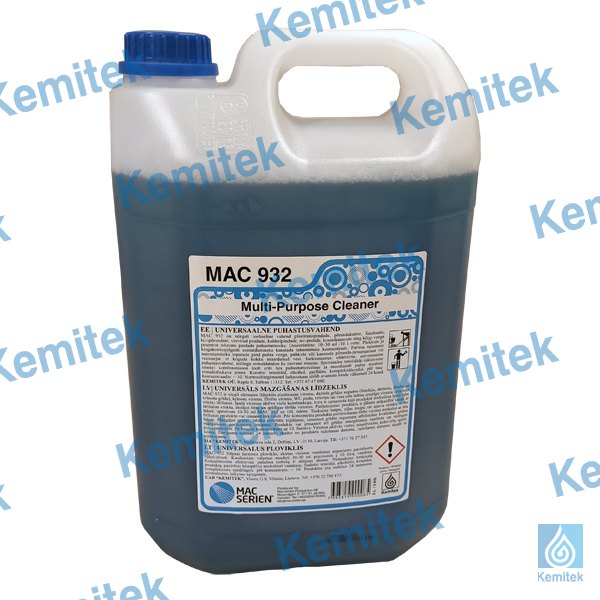 MAC 932 ir viegli sārmains, līdzeklis plastmasas virsmu, dažādu grīdas segumu (linoleja, akmens, flīzētu un krāsotu grīdu), krāsotu virsmu, flīzētu virsmu, WC podu, izlietņu un visu citu ūdens izturīgu virsmu (izņemot stiklu) tīrīšanai. Īpašā virsmas aktīvo vielu kombinācija, kura ir izmantota šajā produktā nodrošina īpaši labu tīrīšanas efektu, atstājot tīras un spīdīgas tīrītās virsmas. Pielietojums: produkts ir jālieto atšķaidītā veidā ar ūdeni, apmēram 10-30ml uz 10 litriem ūdens. Taukainu traipu, eļļas traipu un apavu atstāto švīku tīrīšanai produktu var izmantot tīrā veidā. Pēc koncentrēta produkta pielietošanas tīrīto virsmu noskalot ar tīru ūdeni. Mazgājot grīdas, labāka rezultāta iegūšanai, izmantot grīdas segumam atbilstošas kvalitātes grīdas mazgāšanas aprīkojumu (mopus).