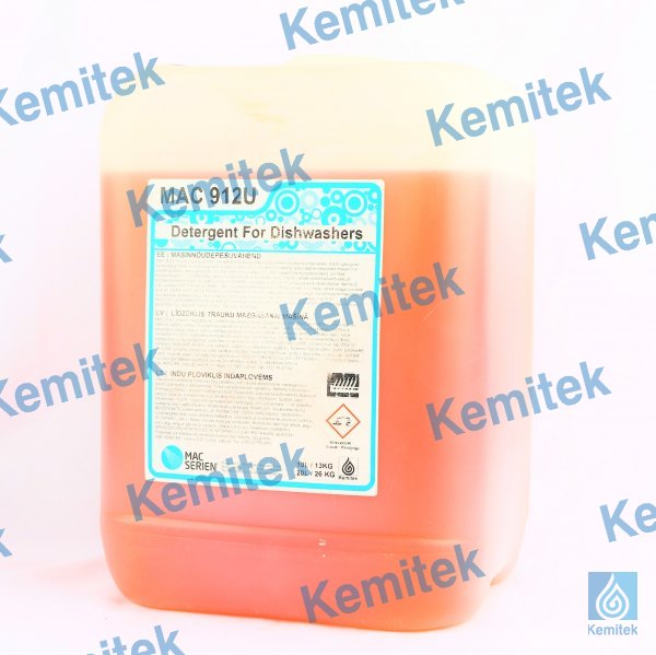 MAC 912U ir koncentrēts līdzeklis trauku mazgāšanai profesionālās trauku mazgājamās mašīnās. Pielietojams ūdenī ar dažādu cietību. Produkts nav piemērots alumīnija un citu vieglo metālu trauku mazgāšanai. Dozēšana: dozējas ar automātisko dozēšanas sistēmu.